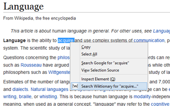 コンテキストウィクショナリーは、単語検索体験を向上させるために設計されたFirefox WebExtensionです。このツールは、ユーザーがウェブページ上の任意の単語を選択し、コンテキストメニューを通じてその定義や翻訳にシームレスにアクセスできるようにします。シンプルなインターフェースを持ち、結果を現在のタブの隣に新しいタブで開くため、ユーザーは元のページでの位置を失うことなく情報を迅速に参照できます。